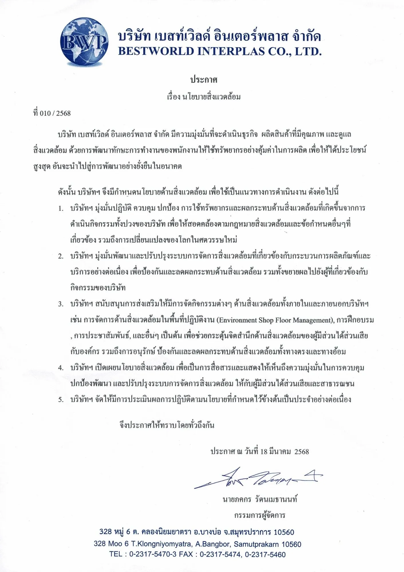 บริษัท เบสท์เวิลด์ อินเตอร์พลาส จํากัด (BWP)